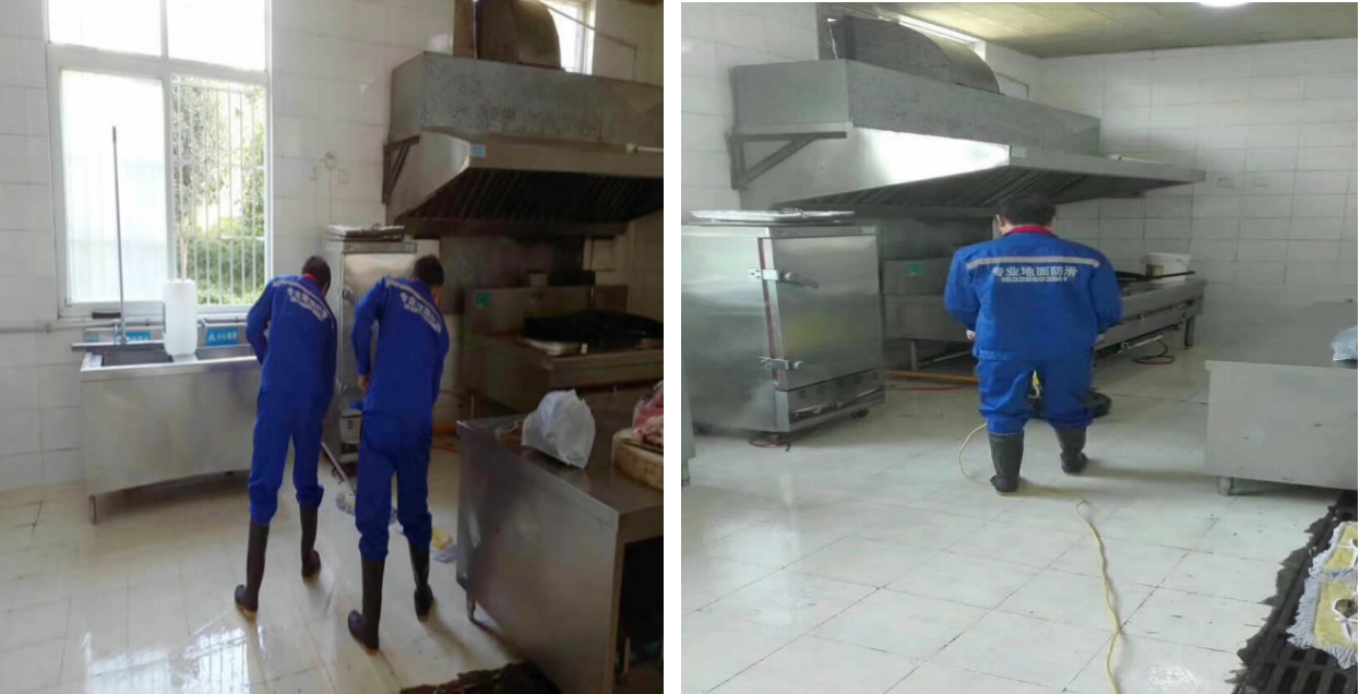 四川广元青川中队厨房的瓷砖地面,因常年受油污和水渍侵扰,厨房地面防滑一直是后勤保障的重点。此次采用世卿隐形防滑技术进行处理,彻底替代了传统防滑垫,让后厨安全与整洁度同步升级。厨房地面防滑当天,世卿团队携带施工桶、兔毛刷、8.0世卿防滑剂和世卿去油去污清洁剂抵达现场。后厨瓷砖表面附着的厚重油污是施工的第一道难关,团队先用去油去污清洁剂对地面进行深度清洁,直至瓷砖表面恢复洁净。清洁后的地面通透,为后续防滑处理打下了坚实基础。随后,施工人员将8.0世卿防滑剂倒入施工桶,用兔毛刷沿着瓷砖纹理均匀涂刷。不同于传统防滑垫的物理覆盖,这种隐形防滑技术通过防滑剂与瓷砖表面的化学反应,在表层形成肉眼难见的防滑结构,既保留了瓷砖原有的美观质感,又能从根本上提升防滑性能。厨房地面防滑过程中,兔毛刷的精细操作确保了防滑剂涂抹均匀,尤其是在排水沟、打菜台等易积水区域,团队特意增加了涂刷次数,确保防滑效果无死角。施工完成后,现场洒水测试效果惊人。原本稍有水渍就打滑的地面,如今即便积水成片,行走其上也稳如平地。相比传统防滑垫易藏污纳垢、需频繁更换的弊端,处理后的地面不仅防滑效果超赞,日常清洁也变得格外轻松,只需简单擦拭就能保持洁净。中队后勤人员对这种既美观又实用的厨房地面防滑方案赞不绝口,世卿隐形防滑技术为后厨安全筑起了一道坚实防线。