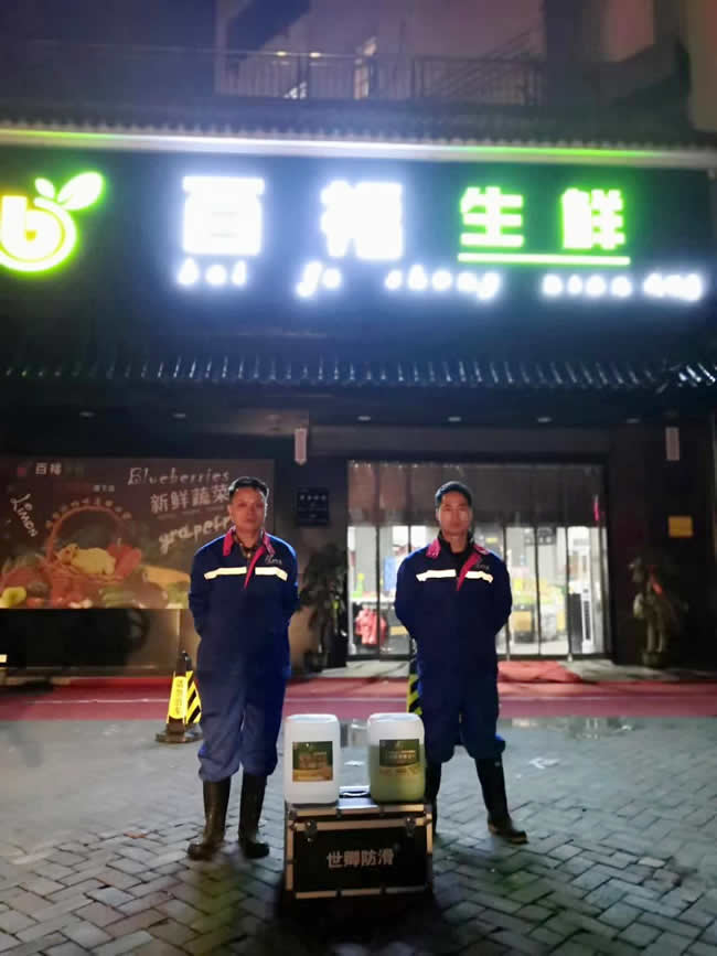 2019年12月31日江西省宜春市北湖购物第四分店百福生鲜超市瓷砖防滑施工已经顺利完成,感谢百福生鲜店老板对宜春世卿防滑团队的信任与支持!超市非常有必要做防滑处理,这不仅是保障顾客与员工安全的基础要求,更是超市合规经营、维护品牌形象和降低运营风险的关键环节。超市作为人员密集、高频次走动的公共场所,地面因清洁、洒水(如生鲜区)、货物搬运等场景极易产生湿滑隐患。蔬果区的菜叶、果皮残留,清洁后的通道地面未及时干燥,都会导致地面摩擦系数大幅降低。再加上顾客中包含老人、儿童、孕妇等行动不便群体,对地面湿滑的耐受度更低,瓷砖防滑施工就是降低滑倒摔伤的主要防护措施。顾客对超市的选择,除了价格和商品,“安全感”也是隐形的核心需求。若超市频发滑倒事故,会给公众留下“管理混乱、不负责任”的负面印象,导致顾客流失;反之,清晰的防滑标识、安全的地面环境,能传递“细节贴心、注重顾客体验”的品牌形象,增强顾客的信任感和复购意愿。瓷砖防滑施工,看似是一场毫无回报的投入,实际上却是对顾客和员工的安全负责。
