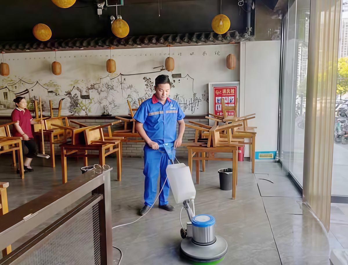 2020年5月27日,安徽阜阳市馨香居饭堂内一片忙碌,世卿防滑团队带着全套设备完成饭堂防滑处理。此次饭堂防滑处理,团队携带的专业工具成为高效作业的关键。世卿定制施工桶用于调配防滑剂,确保浓度精准;柔软的兔毛刷适合边角缝隙清洁,不放过任何卫生死角;环保清洁剂能快速分解油渍,为防滑处理打好基础;而核心设备磨地机更是发挥了重要作用——它不仅能均匀打磨地面,去除表层污渍,还能在涂抹防滑剂时保证药剂渗透均匀,让防滑效果更持久。不怕天高,就怕地滑是餐饮行业的共识。馨香居饭堂因客流量大,地面常残留汤水油渍,此前曾多次出现顾客险些滑倒的情况。世卿团队针对这一问题,先用清洁剂配合兔毛刷做深度清洁,再用磨地机对地面进行精细处理,最后均匀涂抹防滑剂。整个过程中,磨地机的稳定运行让防滑剂与地面充分反应,形成一层隐形防护膜,即使遇水也能保持稳固抓地力。饭堂防滑处理结束后,饭店老板特意在湿润的地面上反复行走测试,确认防滑效果后露出满意笑容。