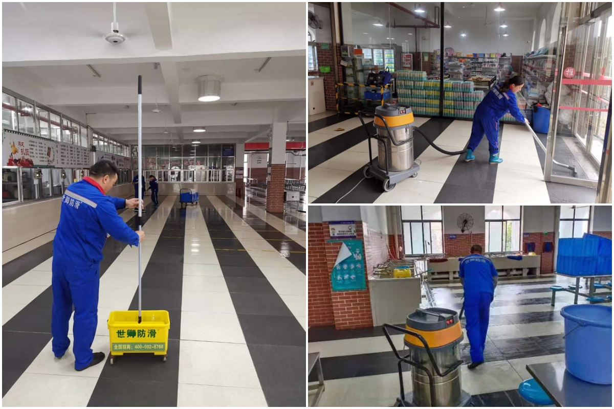 2021年3月12日湖南世卿防滑完成江西萍乡市实验学校防滑施工处理,感谢校领导的信任和支持!实验中学食堂铺设的是黑白拼接的瓷砖地面,几百平的面积三个人几个小时就顺利完成,为这所学校的所有师生在就餐安全添上一道坚固防护。瓷砖材质本身遇水、遇油污后易打滑,而食堂作为师生高频活动的场所,日常操作中难免产生水渍、油渍,存在极大的防滑安全隐患。针对这一痛点,湖南世卿防滑派出专业施工团队,仅由3名技术人员进场作业。凭借成熟的施工工艺和丰富的项目经验,团队高效推进施工流程,从地面清洁、防滑剂渗透处理到后期养护,短短数小时内便完成了数百平米地面的防滑改造,全程未对学校食堂的正常运营造成过多干扰。施工完成后,食堂地面的摩擦系数显著提升,即便在潮湿、有油污的情况下,也能有效防止人员滑倒,从根源上规避了校园内的安全风险。此次合作,离不开萍乡市实验学校领导对校园安全的重视与信任。未来,湖南世卿防滑将持续深耕学校防滑防滑施工处理,以更优质的产品和服务,守护更多师生的出行安全。