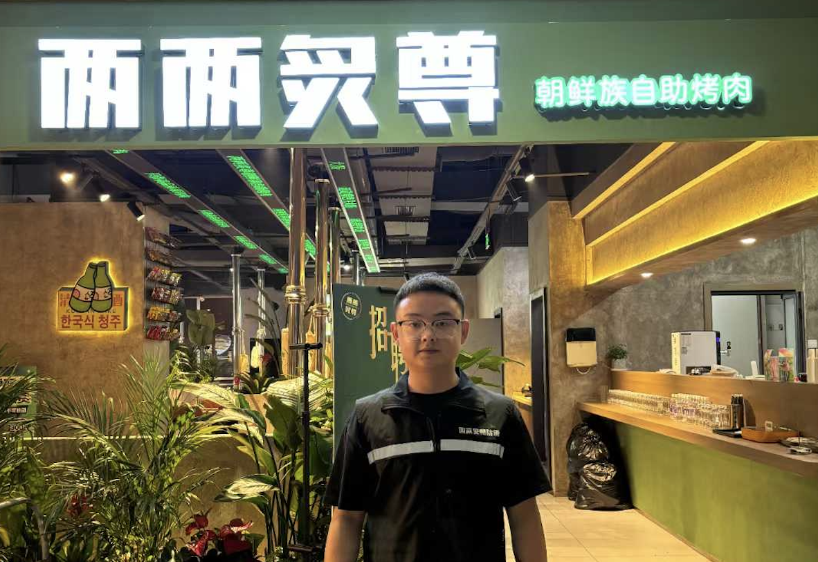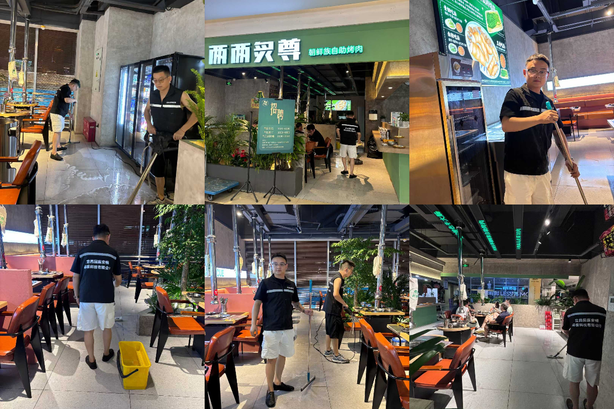 2025年5月27日,湖北世卿合作商团队奔赴湖北省宜昌市大洋百货的《两两炙尊朝鲜族自助烤肉》,开展瓷砖防滑施工工作。出发前,团队仔细清点工具,洗地机、世卿去油去污清洁剂、刮板、兔毛刷以及印着醒目的“世卿防滑”字样的黄色施工桶整齐排列,这些专业装备是保障施工质量的坚实基础。烤肉店的瓷砖地面因长期沾染烤肉油脂、酱料,变得油腻湿滑,尤其是用餐高峰期,地面极易成为安全隐患。团队抵达后,迅速投入工作。首先启用洗地机,配合世卿去油去污清洁剂对地面进行整体清洁。这款清洁剂针对烤肉店的重油污特制,能快速分解油脂。洗地机的滚刷高速运转,与清洁剂协同作用,将地面表层的油污彻底清除,污水顺着吸口被及时吸走。黄色的施工桶在现场格外显眼,里面盛着清洁剂,随取随用,让施工有条不紊。清洁工作完成后,团队开始进行瓷砖防滑施工。他们再次用兔毛刷蘸取防滑剂,均匀涂抹在瓷砖表面,确保每一处都覆盖到位。经过规定时间的渗透后,团队用清水冲洗地面,将残留的防滑剂彻底清除。瓷砖防滑施工结束后,原本油腻的瓷砖地面变得洁净干爽,防滑性能大幅提升,为《两两炙尊朝鲜族自助烤肉》的顾客和员工筑牢了安全防线,也彰显了世卿防滑的专业品质。
