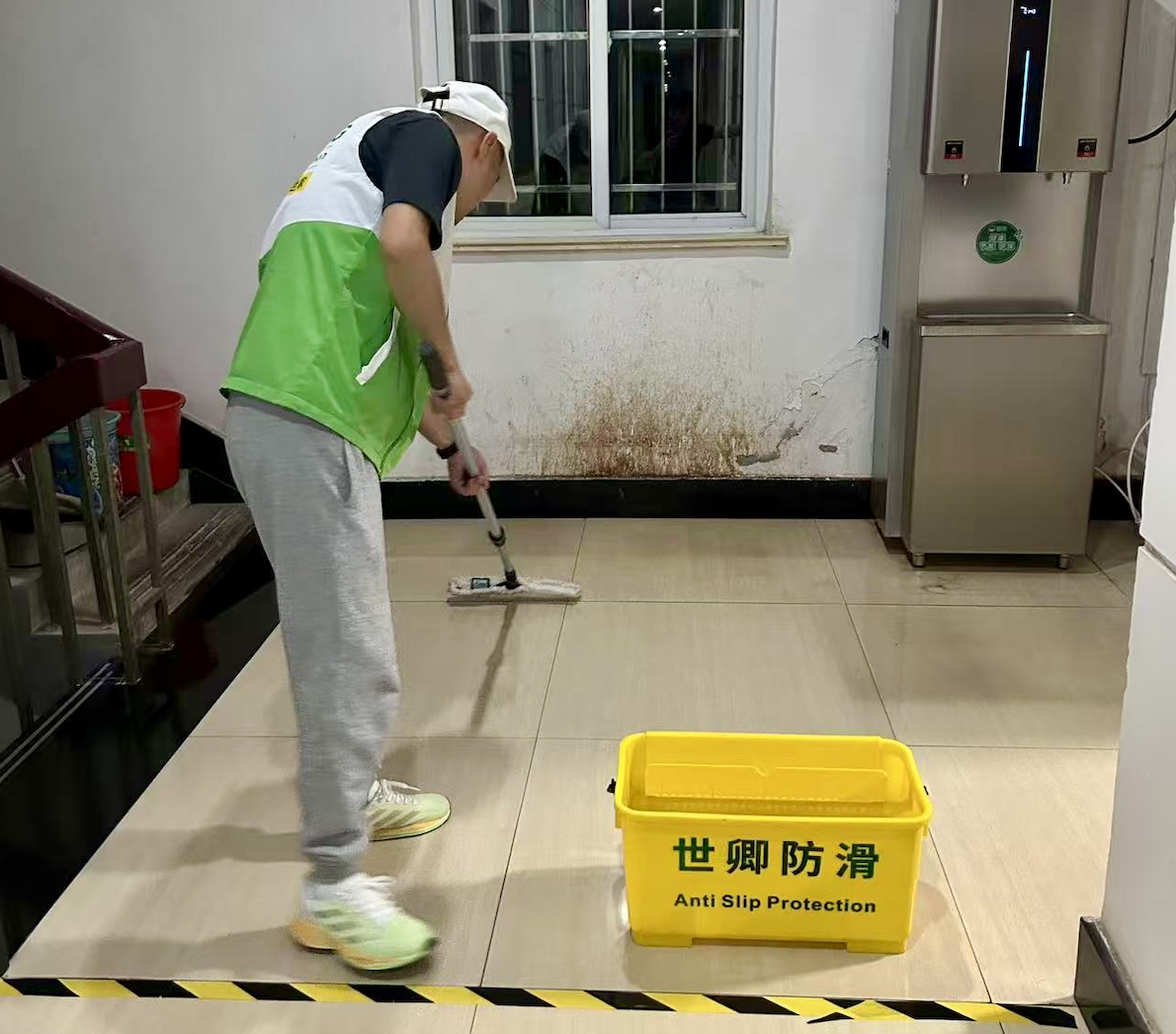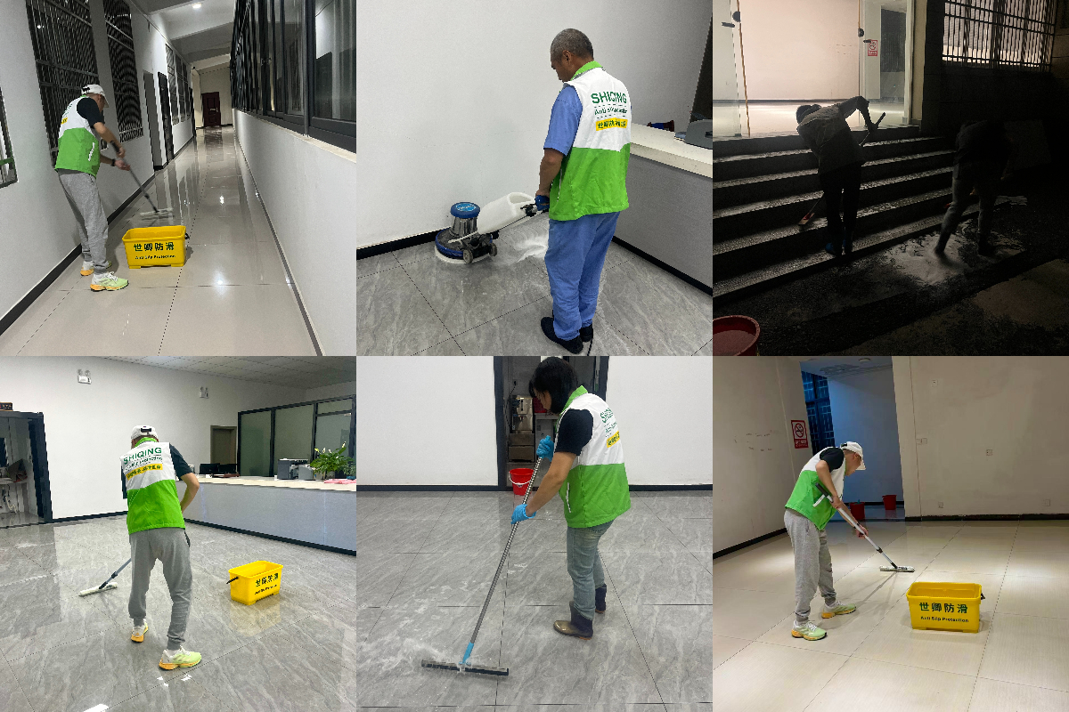 2025年6月3日,我们承接了安庆教育局的仿古砖防滑施工项目。此次施工旨在提升教育局办公区域地面的安全性,尤其是人员频繁走动的区域。施工前期,我们在周边设立了隔离区,使用醒目的警示标识与隔离栏杆将仿古砖防滑施工区域与正常办公区域隔开,不仅确保施工人员的安全,也避免了施工过程对教育局日常工作的干扰,同时预留了合理的通行通道,保障人员的基本通行需求。在工具选用上,我们准备了多种专业工具。针对仿古砖的纹理特性,选用兔毛刷涂抹防滑剂,确保防滑剂能够均匀地渗透到砖体的细微纹理中。在处理大面积地面时,刮板则发挥了高效平整的作用,使防滑剂的涂抹更加均匀且高效。而在清洁环节,由于台阶区域较为脏污,普通毛刷难以彻底清洁,我们采用了长毛刷进行深度清洁。长毛刷的刷毛较长且柔软,能够深入台阶的缝隙与角落,将长期积累的污垢、灰尘等彻底清除,为后续防滑剂的涂抹打下良好基础。对于密度高、孔隙小的玻化砖,则采用专剂防滑剂,使其能够深入砖体内部,扩大毛细孔,从而在遇水时形成微观凹坑,增强吸盘效应,提升防滑效果。在仿古砖防滑施工过程中,我们严格把控防滑剂的停留时间,通常控制在10-15分钟,确保既能达到良好的防滑效果,又不会对瓷砖造成损害。经过一系列严谨、细致的仿古砖防滑施工操作,安庆教育局的仿古砖防滑施工项目顺利完成,地面的防滑性能得到显著提升,为教育局工作人员营造了一个更加安全、可靠的工作环境。