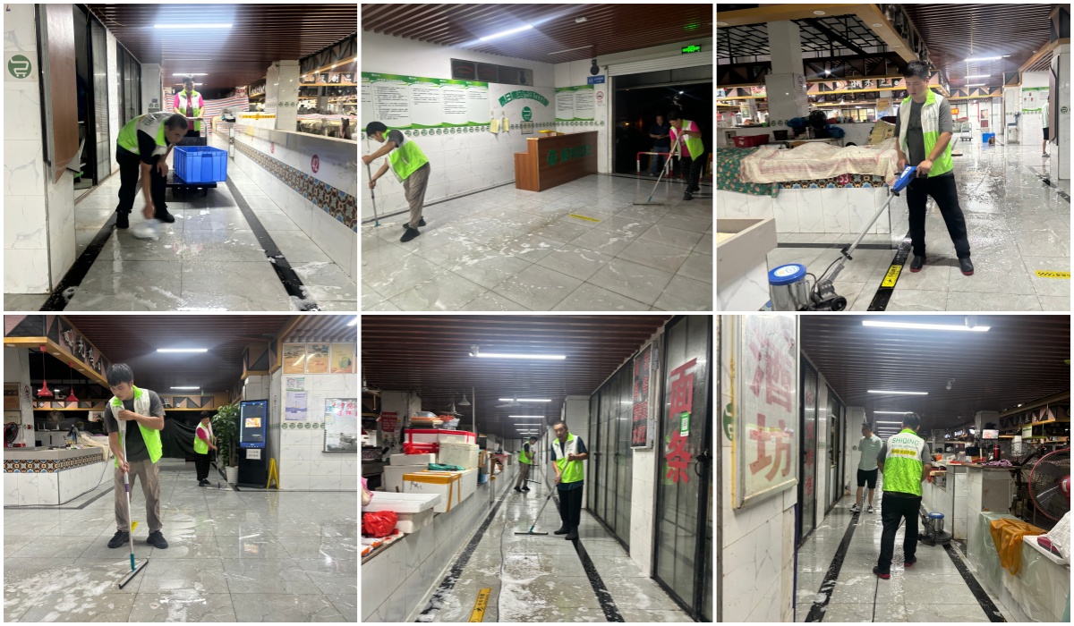 2025年9月22日,上海世卿防滑于当晚市场闭店之后连夜完成了泰日集贸市场的瓷砖地面防滑液处理项目,处理的区域包括市场入口、超市生鲜水产区域,总施工面积超过了一百个平方。泰日集贸市场位于上海市奉贤区金汇镇大昌南路35号,集贸市场内经营布局、功能分区按照鲜、生、熟、干、湿等商品要求严格分开,划分了蔬菜区、肉类区、水产区、副食区、粮油区等,市场在改造之时就已经考虑到了地面湿滑的隐患,特地挑选了防滑地砖铺设地面,起初防滑效果良好,环境干净整洁。但是几年之后,地面开始出现打滑的现象,为了顾客和工作人员的安全,集贸市场的负责人找到了我们,并将瓷砖的图片发给了世卿技术人员,经过辨别瓷砖材质和打样之后,决定将集贸市场超市地面全部进行瓷砖地面防滑液处理。本次施工共有四名施工人员,其中一位是世卿防滑资深的技术老师,经过技术老师合理分工,两两搭配干活,很快就将集贸市场所有的区域完成了,负责人验收的过程中面露喜色,一方面是被从来没有听说过、并且接触过的瓷砖防滑液的神奇效果所折服,另一方面是对于现在地面的防滑效果甚是满意。瓷砖地面防滑液处理能够解决市面上绝大多数类型的瓷砖地面湿滑问题,地面湿滑带来的严重后果不可想象,无法预测,请所有人一定不要带有侥幸心理,认真对待滑倒意外,出现打滑的地面,一定要及时进行干预!