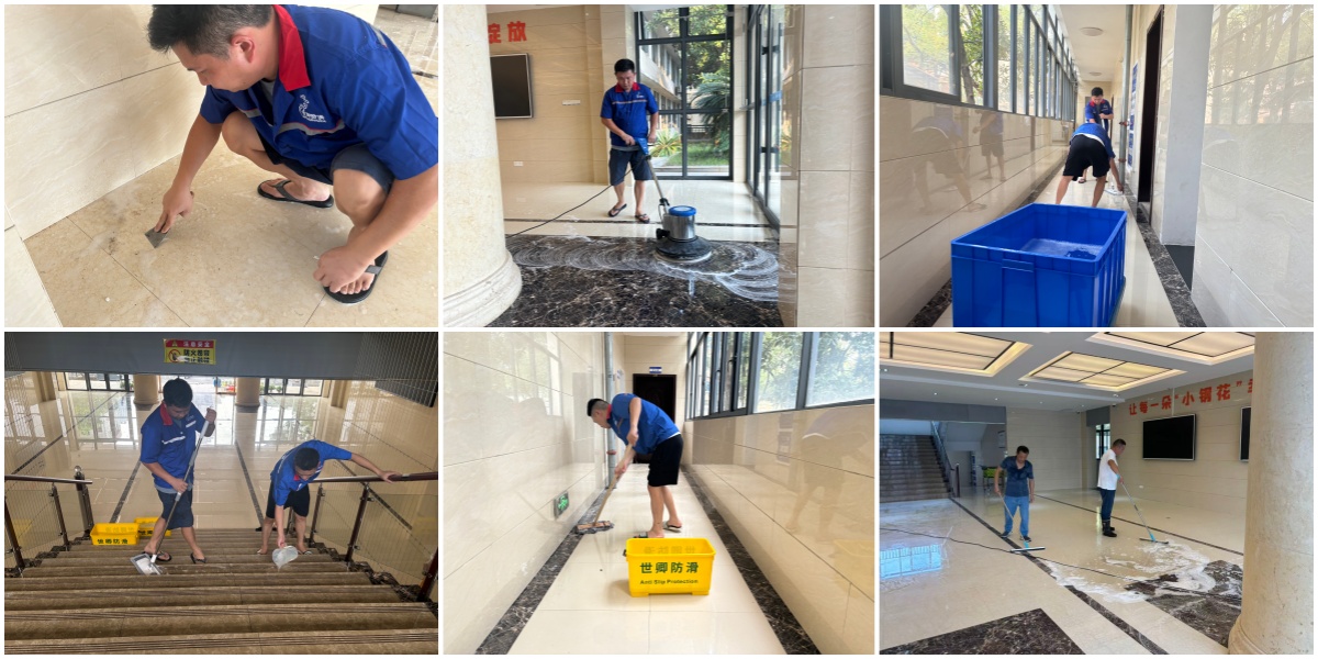 2025年10月,世卿防滑新余团队圆满完成了新余市新钢第一小学教学楼全面防滑施工处理,包括教学楼每层楼的大厅、走廊、楼梯、卫生间等等。世卿防滑凭借13年的施工经验和技术,配备自研的瓷砖防滑剂产品,处理过的学校案例有上百所,可以根据学校需要进行瓷砖防滑剂处理的地面材质、需求进行定制化方案,真的地面的湿滑程度选择最合适的防滑剂型号。小学教学楼是学生在校期间待的最久的地方,处理地面湿滑的产品必须满足下面三个条件:1.地面需平整干净,尽量不要在地面覆盖任何涂料或者防滑垫,涂料大部分含有气味或者甲醛,有害学生身体健康而且还容易开裂,防滑垫容易绊倒学生;2.防滑处理后需测试防滑效果,确保潮湿状态下行走不打滑;3.材料需符合环保标准,无甲醛等有害物质,避免影响学生健康。小学教学楼地面防滑的核心是选对防滑材料,做好施工细节,兼顾安全、耐用与易清洁。瓷砖防滑剂无论是在处理后地面的外表上,还是防滑效果上,都比其他的防滑产品更加优秀,非常适用于教学楼全面防滑施工处理。
