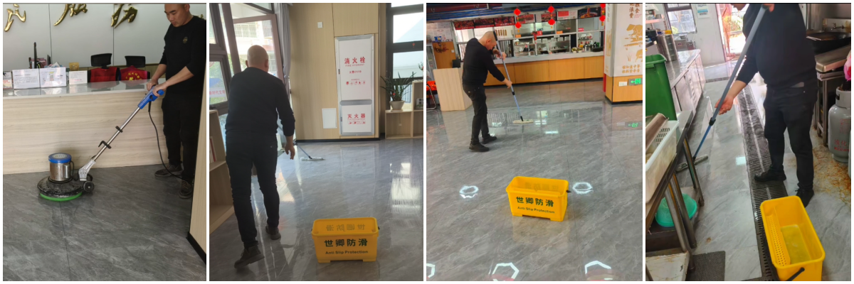 2025年3月1日至2日两天的时间,世卿防滑鹰潭团队完成了鹰潭立新社区委员会大厅及食堂地面防滑液施工处理项目,此次合作的圆满完成,首先离不开鹰潭代理商的努力,其次非常感谢委员会各领导的信任和支持,最后是世卿防滑产品的品质和质量,共同促使本次合作的圆满完成。地面防滑普及到千家万户,一直以来都是世卿人的愿望,滑倒事故给我们以及家人带来的伤害是绝对难以预料的,防患于未然也是每个重视地面湿滑问题的朋友内心所想。瓷砖地面给我们带来了视觉和体验感上的双重感受,我们并不排斥瓷砖地面的出现,但是也必须正视瓷砖遇水就滑的现实,我们可以使用瓷砖防滑剂去解决这个问题。地面防滑液施工处理需要请专业的技术师傅上门施工,这也在一定程度上保护了消费者的权益,好的防滑效果没有明确规定,都是我们十几年经验的老师傅一遍一遍涂刷地面防滑液测试出来的。很多人说,没有必要,只要出售防滑剂,再录制一些使用说明视频就可以了,这样做我们作为品牌方当然要省心很多,但是这是对消费者和客户不负责任,也是对我们自己的产品不负责任。地面防滑液施工处理不是一次服务,而是一项持续2-5年的防滑维护,我们真心希望您远离地滑。