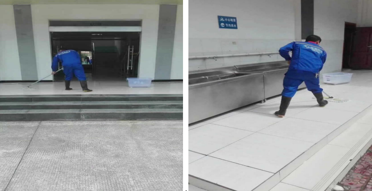 2017.10.1四川省广元市剑阁武警中队后厨的瓷砖地面,因日常操作频繁接触水渍与油污,存在不小的安全隐患。如今,这里的地面防滑处理工作已顺利完成,正如“健康无价,安全防护措施刻不容缓”所言,此次施工为中队后厨筑起了一道坚实的安全屏障。世卿施工团队携带施工桶、兔毛刷、8.0世卿防滑剂和世卿去油去污清洁剂抵达现场。地面防滑处理第一步,便是对后厨瓷砖地面进行彻底清洁。团队用世卿去油去污清洁剂仔细擦拭每一块瓷砖,尤其是灶台周边、水槽下方等油污聚集处,反复清洁直至去除所有油污和污渍。清洁后的地面干净清爽,为后续防滑处理做好了充分准备。清洁工作完成且地面干燥后,施工人员将8.0世卿防滑剂倒入施工桶,拿起兔毛刷,沿着瓷砖的纹理均匀涂刷。8.0世卿防滑剂能与瓷砖表面发生化学反应,形成一层隐形的防滑层,既不影响瓷砖原本的美观,又能大幅提升防滑性能。地面防滑处理过程中,团队成员格外注意那些容易积水的区域,如排水沟附近、洗涮台周围,特意增加了涂刷的次数和厚度,确保防滑效果全面且持久。施工结束后,现场进行了简单的测试,往地面洒水后行走,丝毫没有打滑的感觉。中队官兵对这样的地面防滑处理防滑效果十分满意,这下在厨房操作时,再也不用担心因地面湿滑而发生意外了。