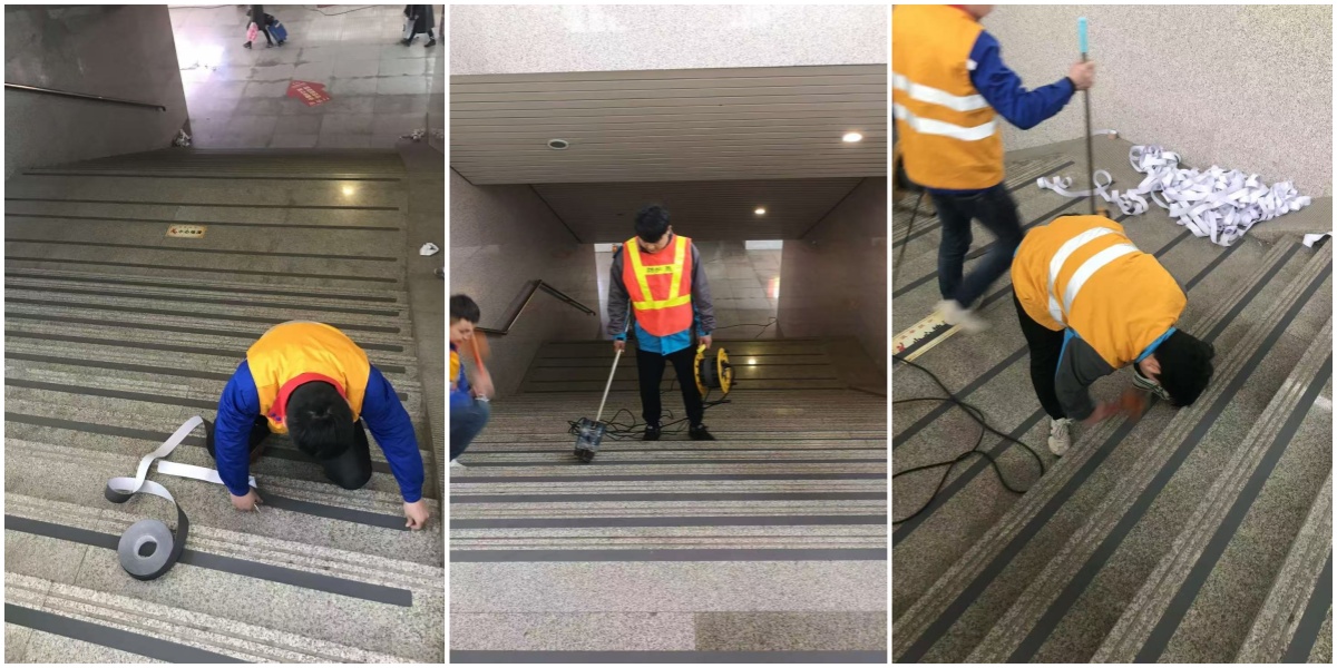 2019年1月20日,上海铁路局旗下高铁站——宿州东站台阶防滑胶带施工处理圆满完成。宿州东站坐落于安徽省宿州市埇桥区,是京沪高铁线上的重要客运站,隶属于上海铁路局,日常客流量稳定,施工时正属于春运前夕,客流也比往常大幅攀升,来来往往的乘客在面对高铁站多重楼梯时,难免会不注意脚下。因此台阶的防滑性能需足够强大,才能有效的保障旅客出行的安全。施工团队提前抵达现场,全面清理台阶表面灰尘、污渍与杂物,确保基层干燥平整;随后根据台阶尺寸精准裁切防滑胶带,规范铺贴、压实加固,杜绝气泡、翘边问题;全程避开客流高峰时段,安排专人现场疏导,采用无尘静音施工,最大限度减少对旅客通行与车站运营的影响,高效完成全部施工任务。防滑胶带铺贴后,台阶表面摩擦系数大幅提升,即便在潮湿、有水渍的环境下,也能有效增强脚底附着力,从源头杜绝滑倒摔伤风险,全面保障旅客出行安全。此次宿州东站台阶防滑胶带施工项目,与此前滁州高铁站项目形成铁路系统防滑服务联动,充分印证世卿防滑在交通枢纽场景的专业适配能力,标准化的施工流程、高效的交付效率和过硬的防滑品质,为上海铁路局旗下站点安全防护升级提供了稳定可靠的支撑。