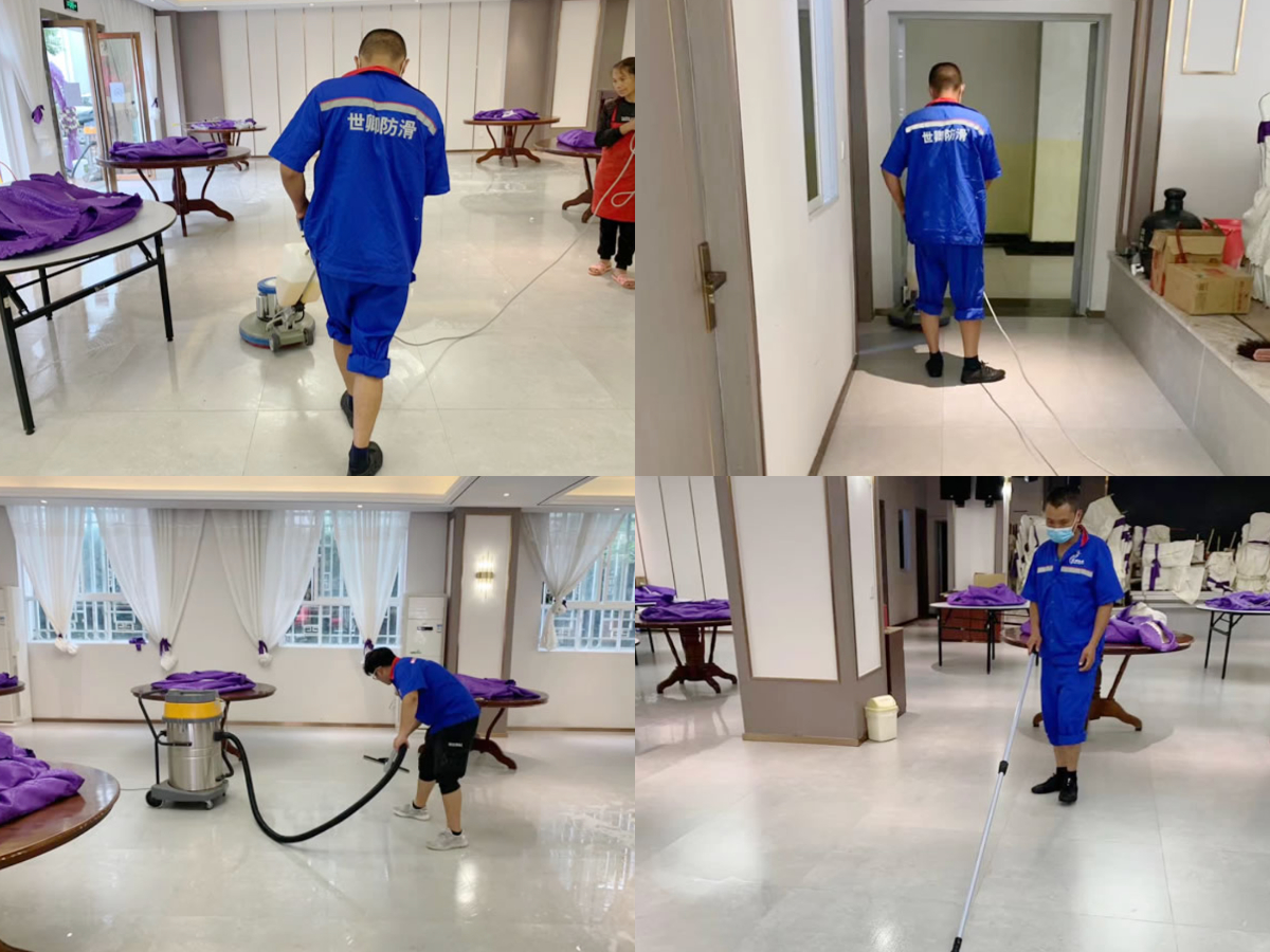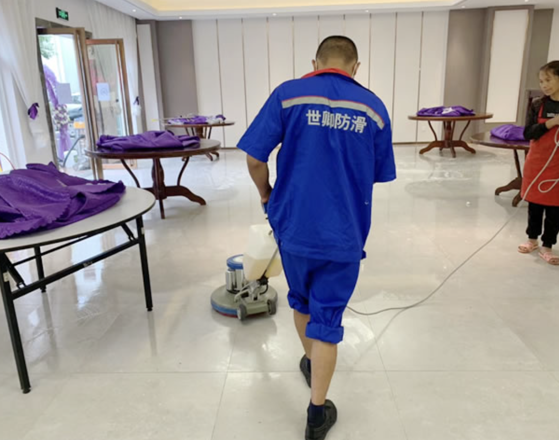 2020年6月18日,对于云南保山市龍陵宾馆而言,是一个值得铭记的日子。世卿防滑团队成功完成了該宾馆餐饮部地面防滑施工处理,以专业服务为宾馆顾客的行走安全保驾护航,这一举措充分彰显了龍陵宾馆老板对顾客的深切关爱以及对品质的执着追求。此次施工,我们运用了专业的洗地机、吸水器和兔毛刷等工具,搭配世卿专剂防滑剂展开作业。这款防滑剂资质齐全,绿色环保,无异味刺激,不仅具备卓越的防滑性能,更对环境和人体健康十分友好。施工后的餐饮部地面,摩擦力显著提升,有效预防了因地面湿滑而导致的意外滑倒事故。即便是在水流较多或油污残留的区域,顾客也能放心行走,无需担忧安全问题。龍陵宾馆通过此次地面防滑施工处理,为顾客营造了一个更加安全、舒适的就餐环境,同时也提升了自身的服务品质与品牌形象。从细微处见关怀,从行动中显担当。龍陵宾馆携手世卿防滑,共同书写了对顾客负责、对安全重视的佳话。今后,世卿防滑也将继续秉持专业精神,为更多场所提供优质的地面防滑施工处理方案,让“不怕天高就怕地滑”成为过去式,让每一次行走都踏实安心。