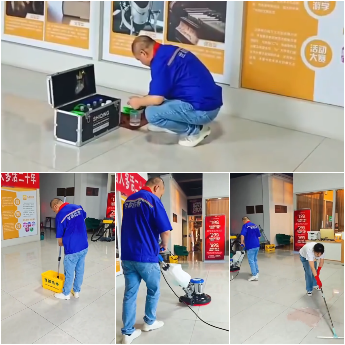 2025年10月,洪湖市荷美荟兴趣乐园开启了场所陶瓷砖涂刷防滑剂工作。荷美荟兴趣乐园兼顾了老年教育、旅居游学、活动大赛等等内容和项目,是一个兼顾学习和娱乐的场所。荷美荟兴趣乐园全区域地面,包含大厅、教室、洗手间等,都采用的是与整体设计风格相统一的黄色纹路亮面陶瓷砖,黄色与红色的搭配青春活力,彰显兴趣乐园的学习氛围积极向上。本次施工项目,荷美荟的负责人首先联系当地的合作商上门进行打样,技术人员选取了一块陶瓷砖根据瓷砖的材质、型号选择了世卿防滑剂专剂8.0亮面砖专用,涂刷防滑剂过后的瓷砖地面和周围瓷砖相比,防滑性能显著提升。除此之外,地面的颜色几乎没有任何改变,处理过后的效果受到了兴趣乐园负责人的赞叹:“我之前找了一家防滑剂公司,他们打样之后瓷砖发白,而且还不均匀,世卿的防滑剂可以做到颜色没有太大变化,效果也好,真不愧是大品牌。“打样过后的第二天,负责人再次联系代理商,决定与世卿防滑合作,将兴趣乐园容易湿滑的地方都进行一遍防滑剂处理,提升地面的安全指数。陶瓷砖涂刷防滑剂工作正式开展,仅仅用了不到半天的时间就全部完成。地面湿滑问题一定不要忽视,年轻人不小心滑倒摔一跤都来不及反应可能造成受伤,更不要说幼儿和老年人了,作为公共场所,任何年龄段的人安全一定要保证。
