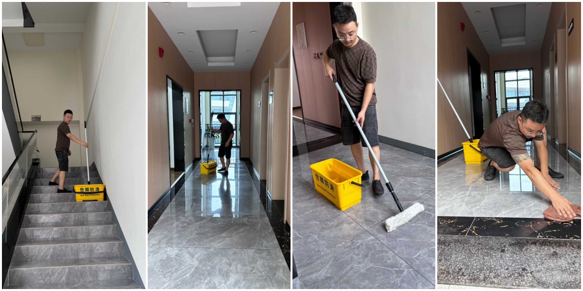 湖北省宜昌市西陵区联诺建设有限公司室内楼梯走廊大理石防滑处理于2025年8月23日顺利完成!公司整栋楼所有的地面采用的都是光滑的花灰色大理石,虽然耐脏好看,但是稍微遇到点水,或者是不好的天气,地面就特别的湿滑,大理石表面密度高、孔隙率低,遇水或油污后摩擦系数会骤降至0.2以下。地面湿滑带来的危害不容小觑。从行人角度来看,在湿滑地面行走时,人们很容易失去平衡而滑倒。滑倒可能导致身体各部位受伤,如手腕、脚踝扭伤,严重时甚至会造成骨折,这种事情谁都不想发生。防滑处理后,大理石地面的静摩擦系数经过专业仪器检测,已经提升了一个等级,远远超过了国家的防滑标准,即便是地上有水,也不会再滑。大理石在很多场所都在使用,它的本质其实还是瓷砖地面的一种,因此,瓷砖防滑剂用在大理石地面上同样适用。大理石防滑措施有很多,家庭场所可以在铺设大理石的地方铺上一层防滑垫,公共场所则可以请专业的瓷砖防滑剂施工团队进行统一施工。大理石防滑,本质是“预防大于补救”的安全逻辑。一次及时的防滑养护,或许就能避免一次伤害发生。