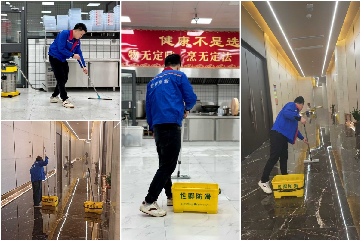 河南信阳固始县百嘉西宴酒店三期大理石地面防滑施工于2025年1月12日顺利完成。固始县百嘉喜宴酒店是一家位于河南省信阳市固始县的专业宴席服务场所,提供婚宴、生日宴等餐饮服务,地点位于河南省信阳市固始县城关镇潘国大道。百嘉西宴本次找到世卿防滑,目的就是将酒店全部场所的瓷砖地面都进行瓷砖防滑剂处理,酒店内部铺设的是光亮平整的大理石,这种类型的瓷砖地面唯一的不足就是遇水遇油就很湿滑,用在公共场所无论是对工作人员还是对顾客、客户都存在潜在的危害。所以铺设大理石的场所,瓷砖防滑剂一定要安排上,防滑剂可以解决一大部分地面遇水遇油湿滑的问题,大大降低顾客滑倒的风险。大理石地面防滑施工几乎不会影响瓷砖的外貌,而且施工时间灵活多变,可以选择公共场所不营业的时间段进行处理。处理之后地面马上就可以正常使用,世卿防滑剂产品无色无味、无毒无害,处理完成之后也不会释放任何有害气体。世卿防滑再次感谢百嘉西宴酒店领导的信任。
