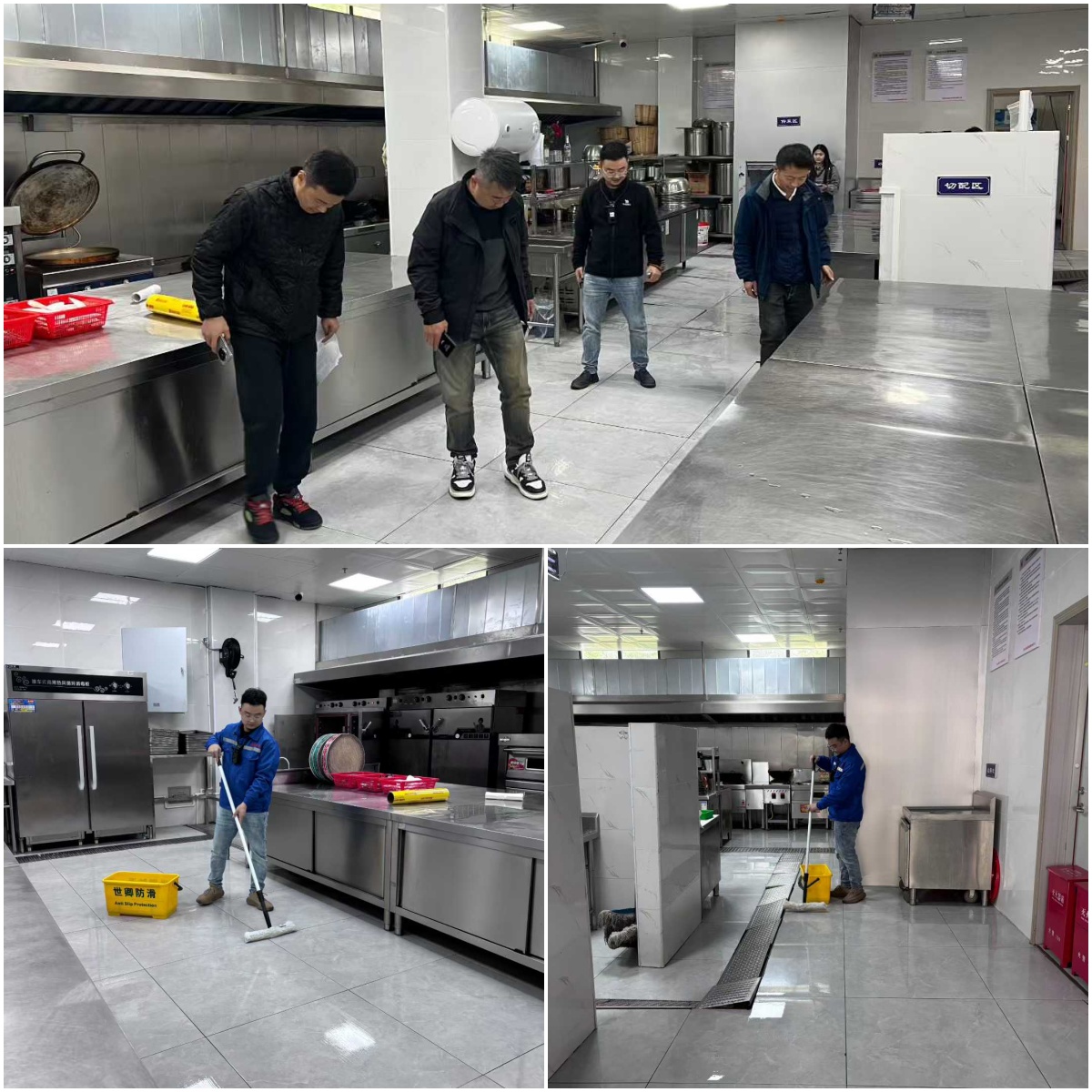 2025年11月4日,湖北世卿防滑合作商顺利完成了巴东县黄家湾殡葬有限公司食堂后厨地面防滑处理任务。生老病死是自然规律,而殡葬公司作为承接身后事的核心载体,承接着遗体接运、灵堂布置、告别仪式、火化协助、骨灰安葬等全流程服务。从医院、养老院的逝者接送,到家庭突发情况的应急处置,再到后续的手续办理,每个环节都可能有家属往来对接。家属往往依赖殡葬公司的“一条龙”服务处理丧葬事宜,进一步提升了人员流动性。尤其是现在进入到了秋冬换季的季节,工作人员开始忙碌,食堂后厨的人员外出携带的雨水,处理清洗蔬菜食材时洒下的水渍、炒菜时的油污,稍不小心就会滑倒受伤。再加上公司食堂后厨地面铺设的是防滑效果并不好的大理石亮面砖,所以非常的湿滑。后厨工作人员在忙碌时好几次险些滑倒,管理人员发现了这个问题,便马上开始寻找各种解决瓷砖地面遇水遇油湿滑问题的办法。联系到了世卿防滑之后,世卿防滑对后厨的区域进行了打样测试效果,管理人员亲自体验到效果之后觉得非常不错,决定将后厨所有的地面都进行瓷砖防滑剂涂刷处理。经过工作人员几个小时的努力,巴东县黄家湾殡葬有限公司食堂后厨地面防滑工作圆满完成,全国又增加了一篇安全的瓷砖地面!