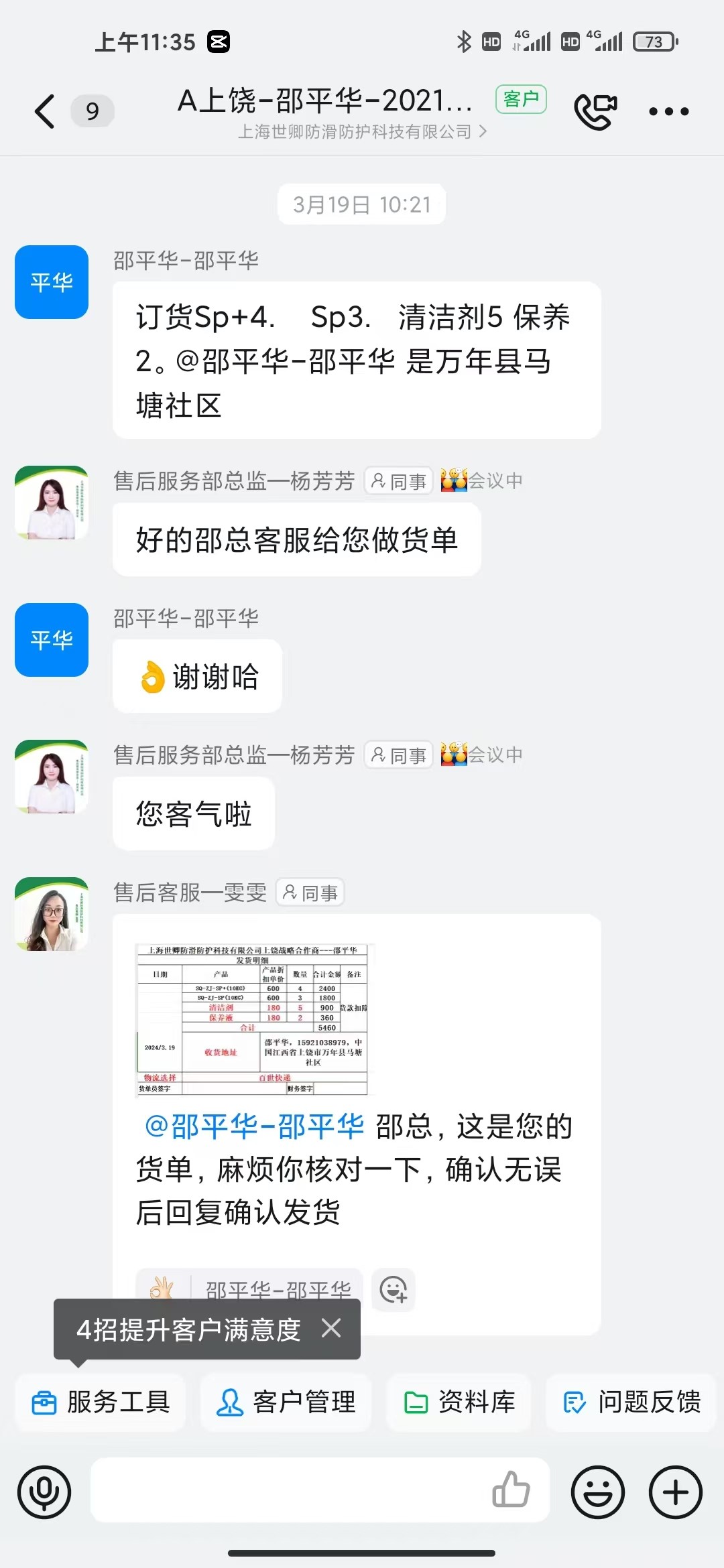 邵平华从加入世卿的那一刻起都在认真对待防滑,由于老家上饶没有人进行过防滑处理项目,也没有宣传过地面防滑,很多人对防滑剂不了解,导致一个月他都在不断地推广、打样,但仍然没有开单,基本上跑一家拒绝一家,一个月之后他虽然感觉到很失落,但依旧保持着前期地计划,甚至在打样后无论别人拒绝不拒绝都要加上微信,通过每天发朋友圈和视频让他们逐渐相信防滑剂地真实效果。